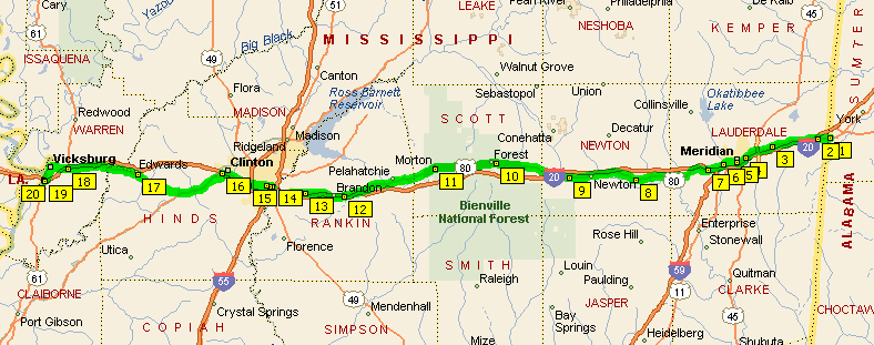 | 1 | Tue 10/23/2001 11:00am | 0.0 | AL/MS state line | US 80W to Vicksburg |